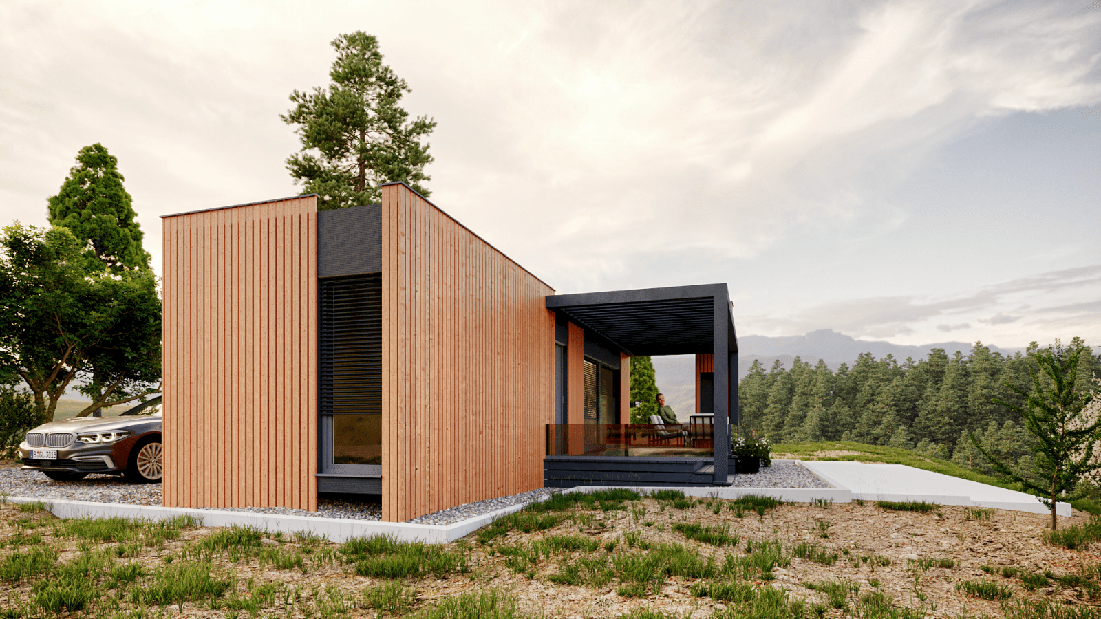 MMH21_M.01 je mobilna kuća, koju čini jedan stambeni modul sa natkrivenom terasom, namijenjen za boravak četiri osobe. Pored dnevne sobe, trpezarije, hodnika, kupatila i spavaće sobe, postoji velika terasa, kao produžetak dnevne zone. Predviđena je za druženje i okupljanje, a moguće je opremiti dodatnim, tipskim modulom roštilja i bioklimatskom pergolom, kako bi Vaš boravak u prirodi bio ugodan bez obzira na vremenske prilike. ZAŠTO NEKO PARČE PRIRODE NE BI BILO OBLIKO- VANO PO VAŠOJ MJERI?